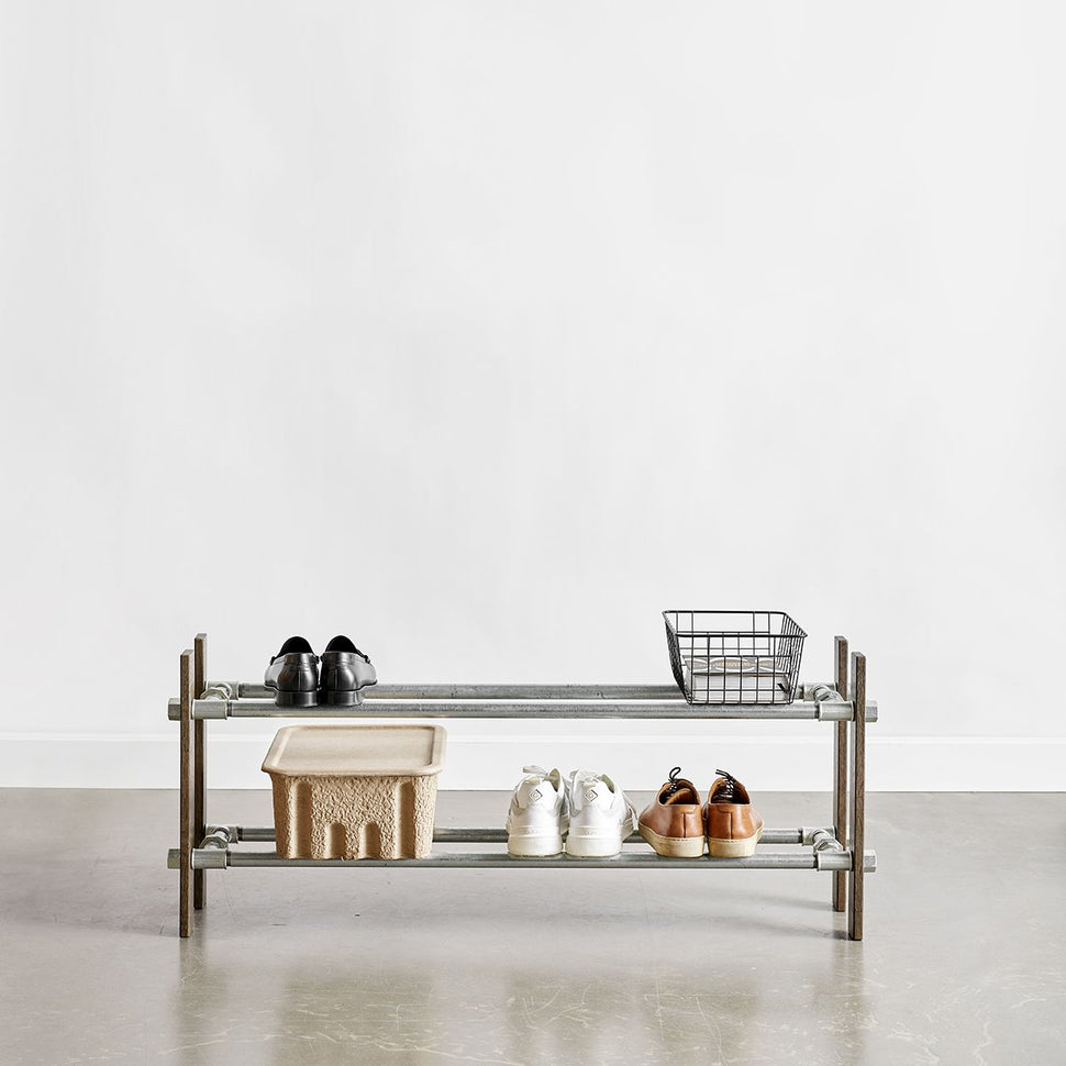 Upptäck vår innovativa förvaring med RackBuddy skohylla i rökt ek 2 nivåer - Skohylla i minimalistisk stil finns i två breddar