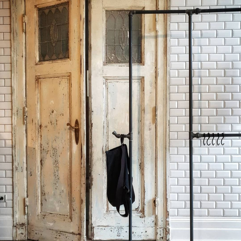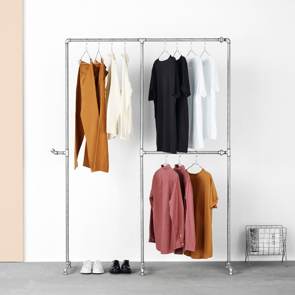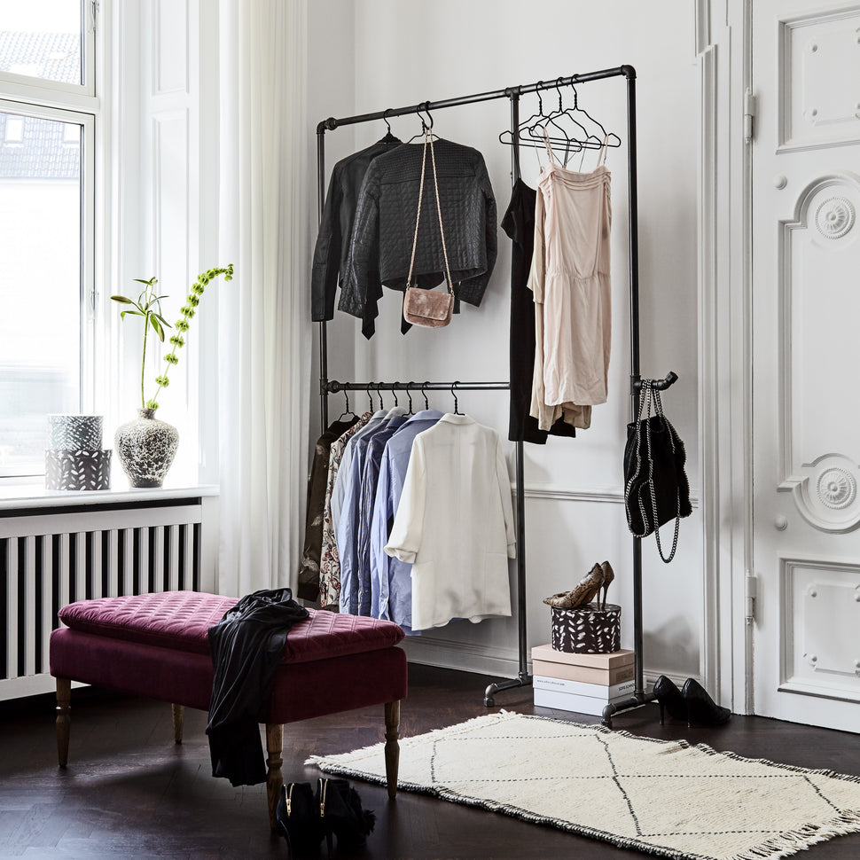 Unik design: Det nedersta röret går inte genom hela bredden, vilket frigör plats för att fritt hänga långa klänningar eller andra långa plagg.