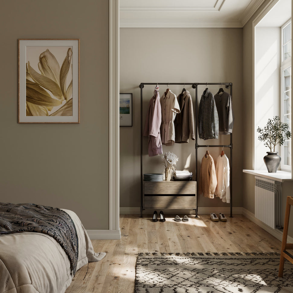Dessa mått säkerställer att du får en perfekt passform – oavsett om du bor i en större lägenhet eller en villa i förorten. Med flexibla lösningar kan du tillsammans med oss på RackBuddy anpassa din garderob exakt efter dina önskemål.