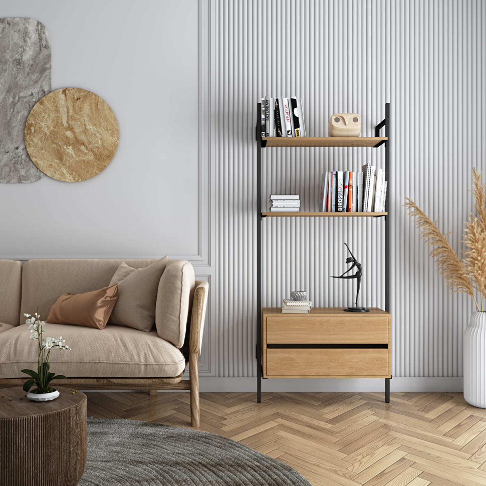 Byråns två lådor har en soft-close-funktion som gör dem lika funktionella som estetiskt tilltalande. Du kan välja mellan en klassisk nyans av ek och en rökigare ekfanér på byrån.