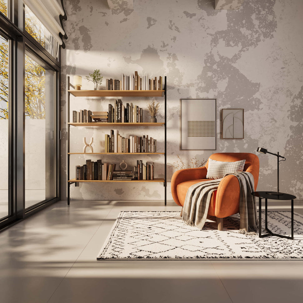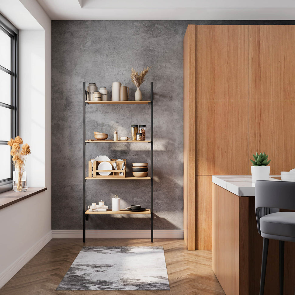 Den består av en trähylla i ekfanér som får stöd av två pulverlackerade fyrkantiga hyllkonsoler i järn. Välj mellan en ljusare, klassisk ekfanér och en mörkare, rökt variant att kombinera med hyllkonsoler i mattsvart.