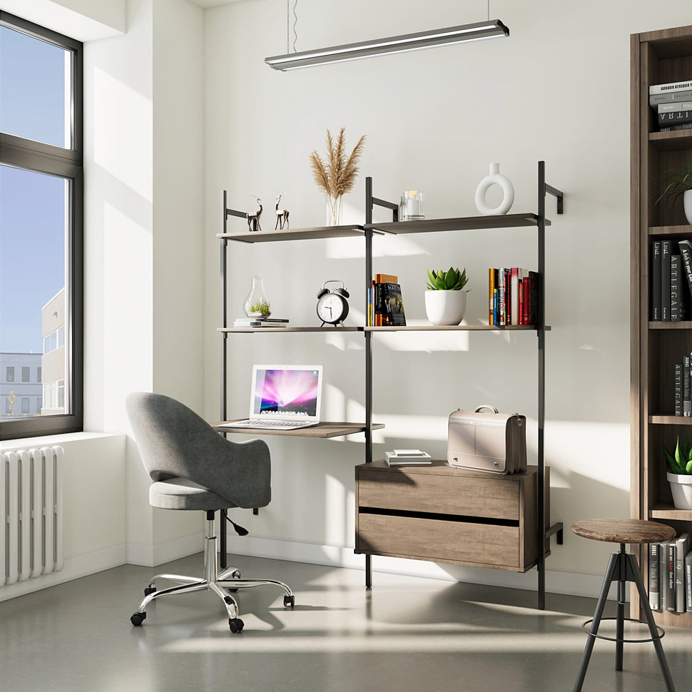 (2 hyllor + 1 skrivbord / 2 hyllor + 1 byrå)Vi erbjuder gratis rådgivning och design