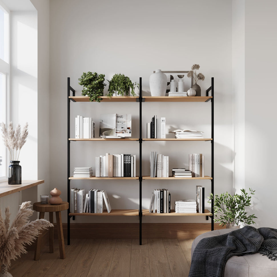 Maxa din förvaring med detta hyllsystem. Med totalt 8 stycken höj- och sänkbara hyllor i ek fördelat över två sektioner finns där mycket plats till förvaring av tröjor, byxor, skor eller väskor. Kombinera den med en annan modell från vår Frame Walk-In Collection för att skapa en komplett öppen garderob som uppfyller just dina behov. Hyllsystemet är lika bra på att skapa ordning i garderoben eller i sovrummet som i vardagsrummet. Där kan du använda det som en bokhylla eller för att sätta upp växter eller foton.