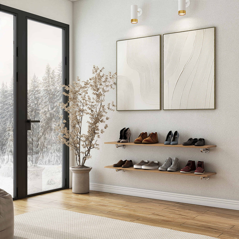 Med en hylltjocklek på 18 mm och ett djup på 30 cm är vår hylla exakt framtagen för att maximera utrymmet i ditt hem – oavsett om det är i hallen, vardagsrummet, köket eller badrummet, där du behöver organiserad förvaring för skor, kläder, böcker och mer.